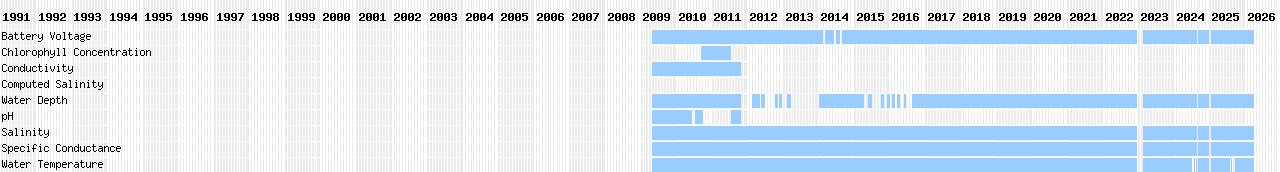 Station water depth is an imprecise measurement. It is based on mounting the sensor approximately 9 inches from seafloor and adjusting data based on a contemporaneous lead line measurement.